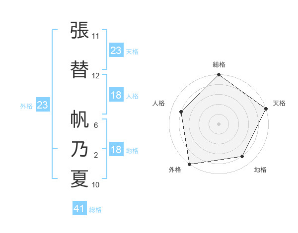 張替 帆乃夏さんの総格は41画の5点!