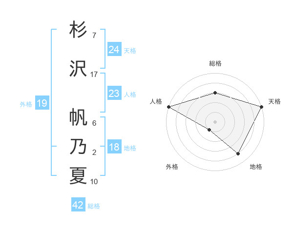 杉沢 帆乃夏さんの天格は24画の5点!