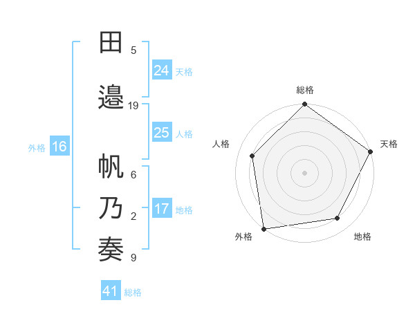 田邉 帆乃奏さんを姓名の画数から五運を鑑定