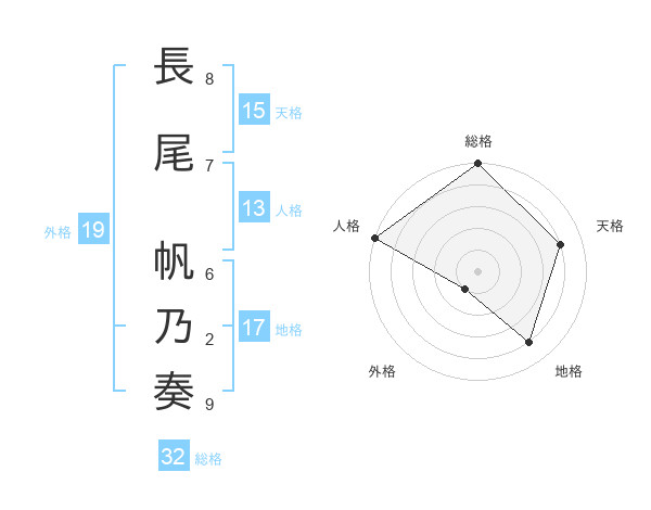 長尾 帆乃奏さんを姓名の画数から五運を鑑定