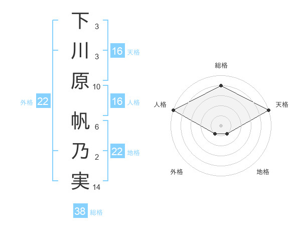 下川原 帆乃実さんを姓名の画数から五運を鑑定