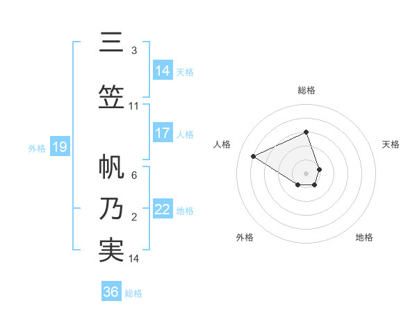 三笠 帆乃実さんを姓名の画数から五運を鑑定