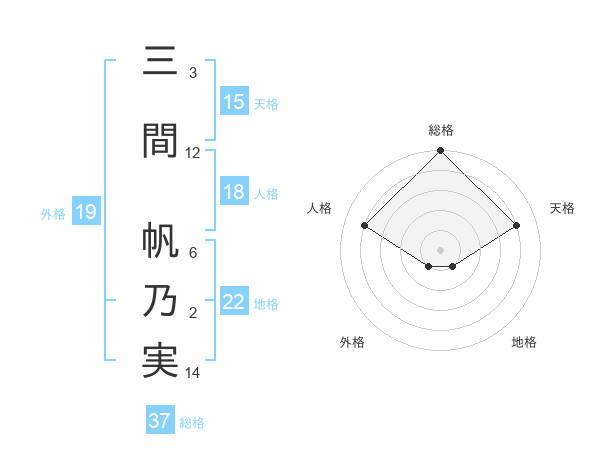 三間 帆乃実さんを姓名の画数から五運を鑑定
