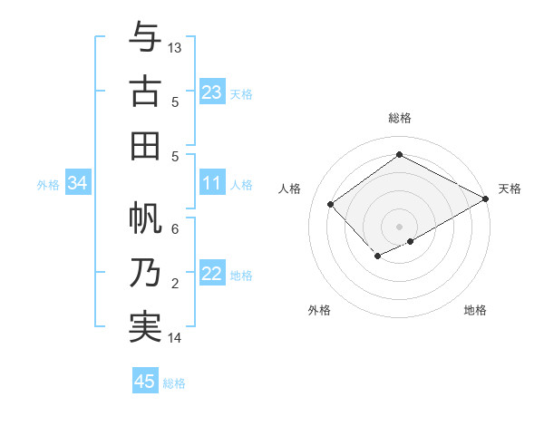 与古田 帆乃実さんの天格は23画の5点!