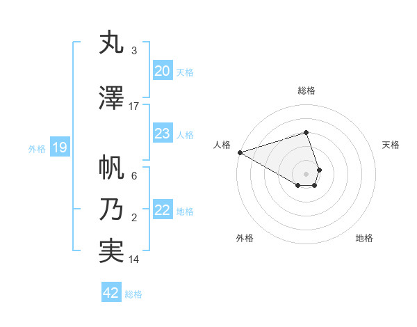丸澤 帆乃実さんの総格は42画の3点!