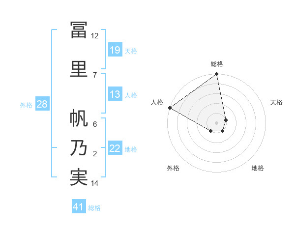 冨里 帆乃実さんの総格は41画の5点!