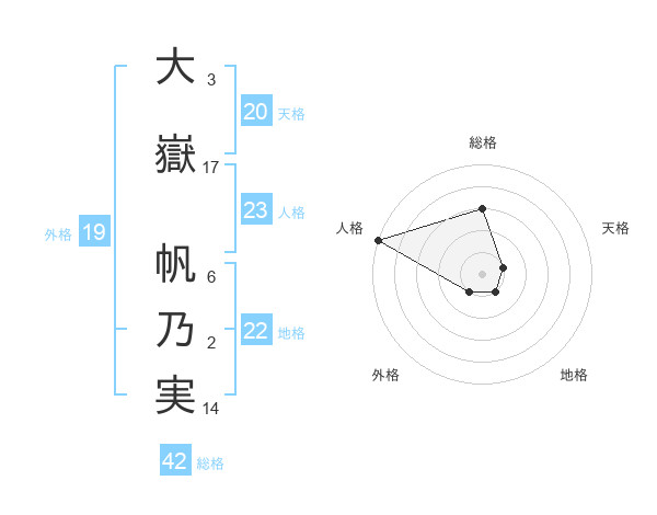 大嶽 帆乃実さんを姓名の画数から五運を鑑定