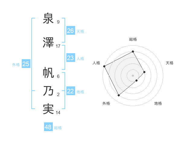 泉澤 帆乃実さんの総格は48画の4点