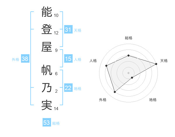 能登屋 帆乃実さんの総格は53画の3点!