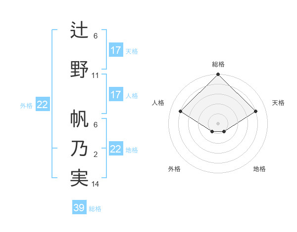 辻野 帆乃実さんの地格は22画の1点!
