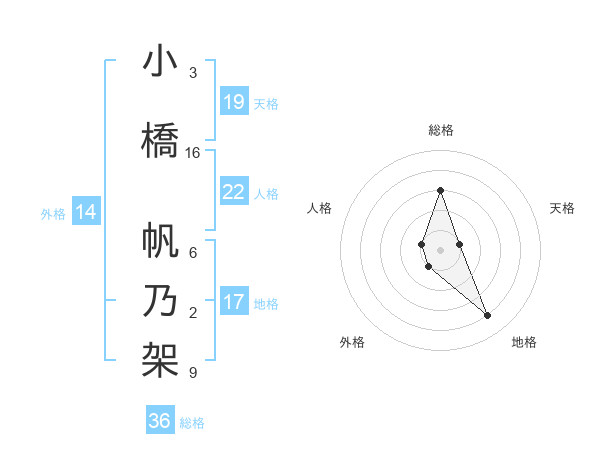 小橋 帆乃架さんを姓名の画数から五運を鑑定