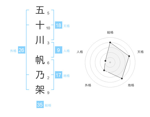 五十川 帆乃架さんを姓名の画数から五運を鑑定