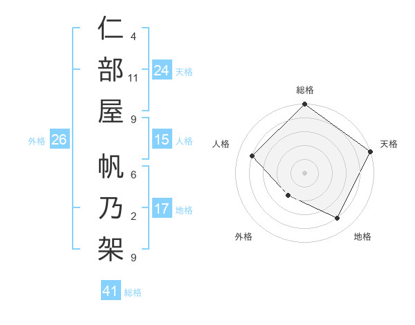 仁部屋 帆乃架さんを姓名の画数から五運を鑑定