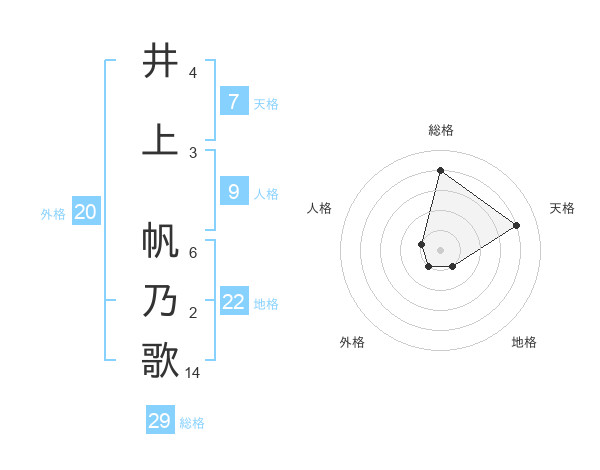 井上 帆乃歌さんを姓名の画数から五運を鑑定
