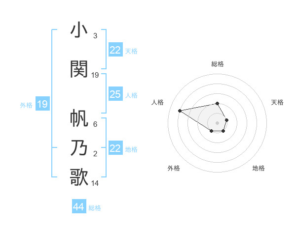 小関 帆乃歌さんを姓名の画数から五運を鑑定