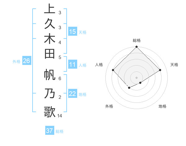 上久木田 帆乃歌さんの総格は37画の5点!