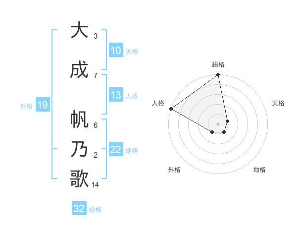 大成 帆乃歌さんを姓名の画数から五運を鑑定
