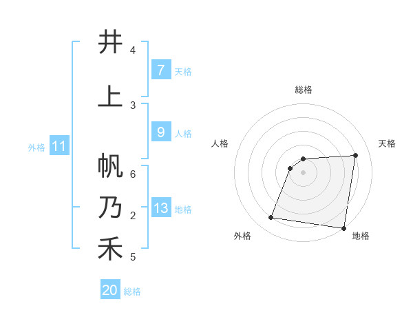 井上 帆乃禾さんを姓名の画数から五運を鑑定