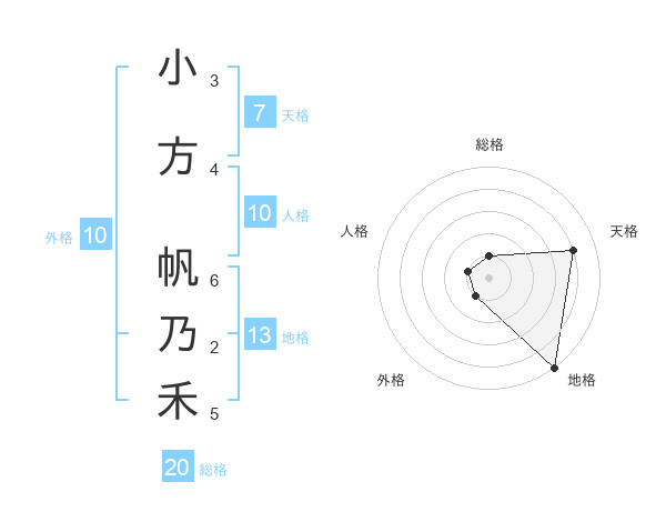 小方 帆乃禾さんの地格は13画の5点!