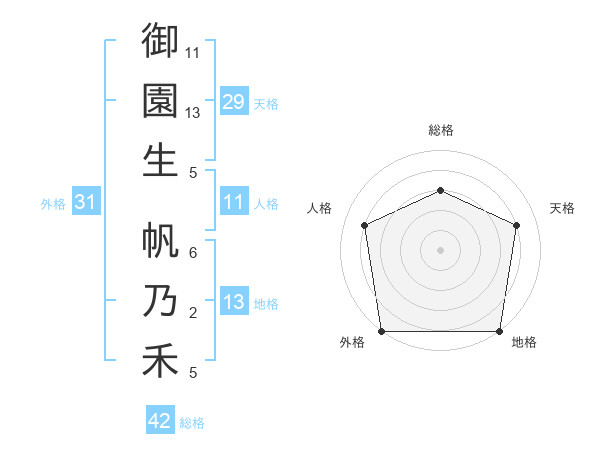 御園生 帆乃禾さんを姓名の画数から五運を鑑定
