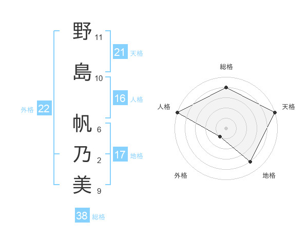 野島 帆乃美さんを姓名の画数から五運を鑑定