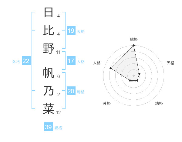 日比野 帆乃菜さんを姓名の画数から五運を鑑定