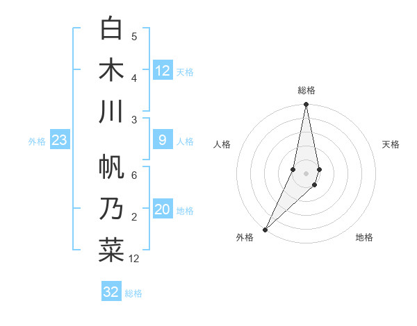 白木川 帆乃菜さんの総格は32画の5点!