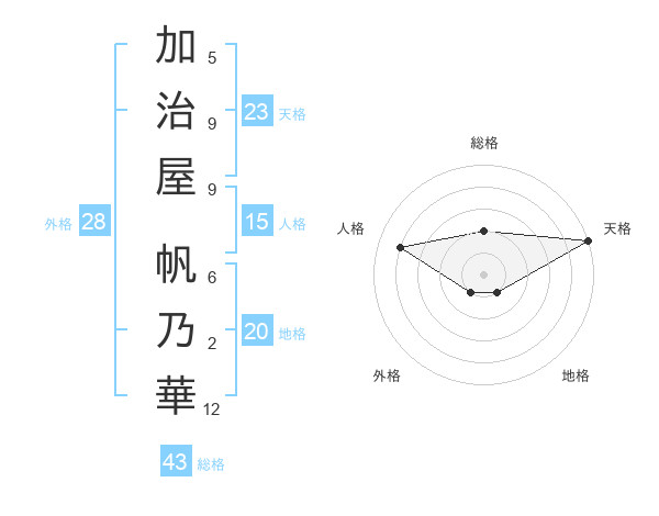加治屋 帆乃華さんの天格は23画の5点
