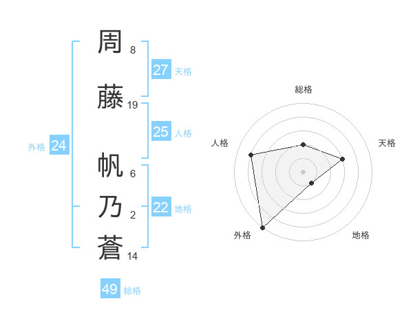 周藤 帆乃蒼さんを姓名の画数から五運を鑑定