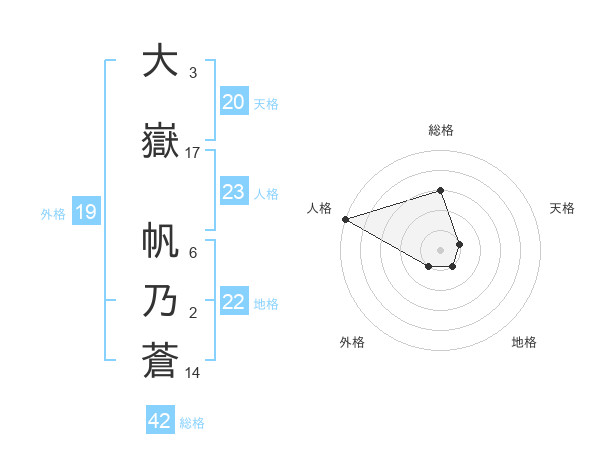 大嶽 帆乃蒼さんを姓名の画数から五運を鑑定