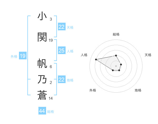 小関 帆乃蒼さんを姓名の画数から五運を鑑定