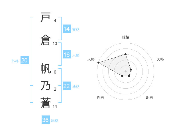 戸倉 帆乃蒼さんの総格は36画の3点!