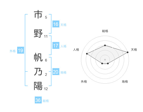 市野 帆乃陽さんを姓名の画数から五運を鑑定