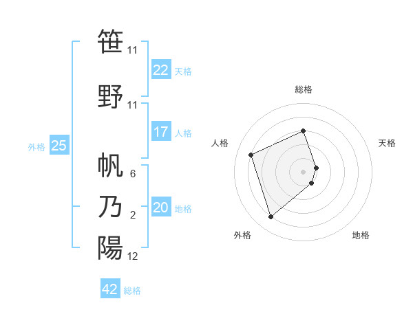 笹野 帆乃陽さんの総格は42画の3点