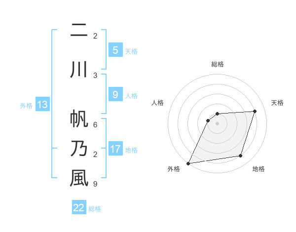 二川 帆乃風さんを姓名の画数から五運を鑑定
