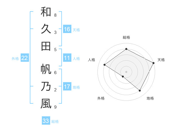 和久田 帆乃風さんの総格は33画の4点!