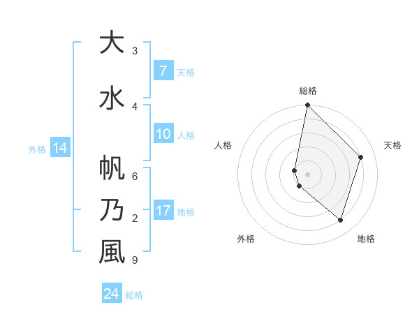 大水 帆乃風さんを姓名の画数から五運を鑑定