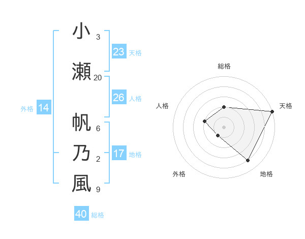 小瀬 帆乃風さんを姓名の画数から五運を鑑定