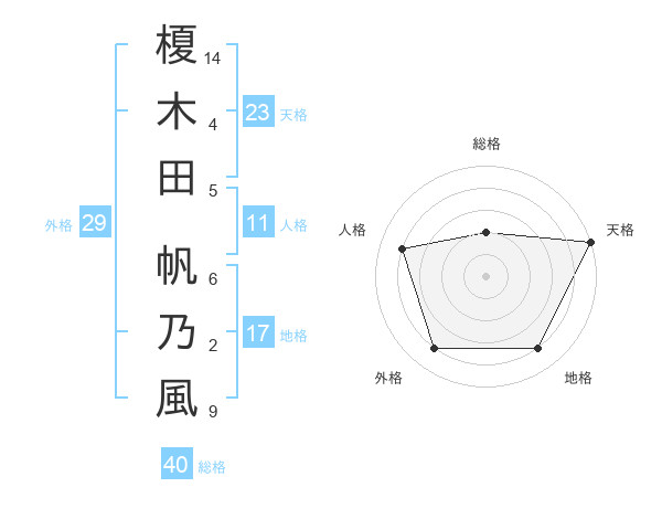 榎木田 帆乃風さんの天格は23画の5点!