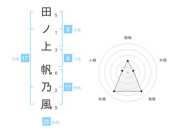 田ノ上 帆乃風さんを姓名の画数から五運を鑑定