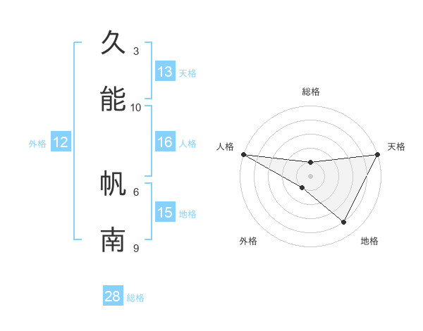 久能 帆南さんの総格は28画の1点!