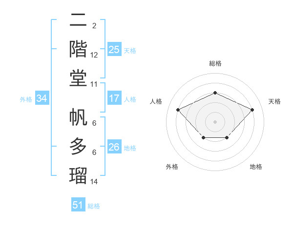 二階堂 帆多瑠さんの総格は51画の3点!