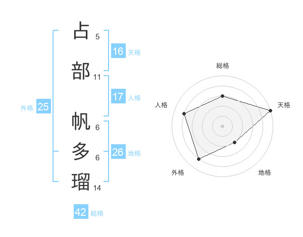 占部 帆多瑠さんを姓名の画数から五運を鑑定