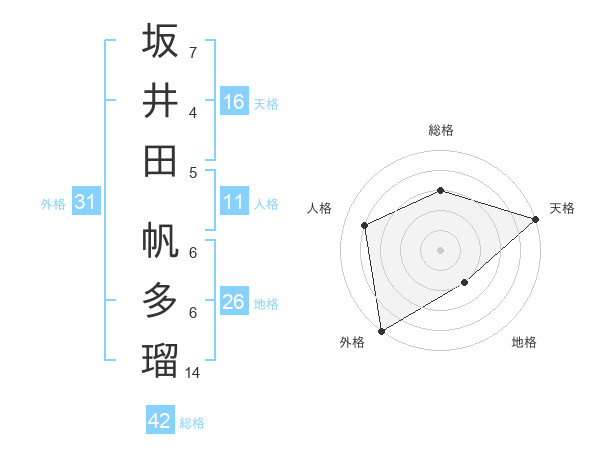 坂井田 帆多瑠さんを姓名の画数から五運を鑑定