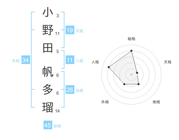 小野田 帆多瑠さんを姓名の画数から五運を鑑定