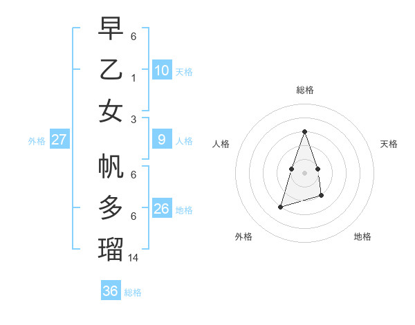 早乙女 帆多瑠さんを姓名の画数から五運を鑑定