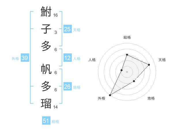 鮒子多 帆多瑠さんの総格は51画の3点!