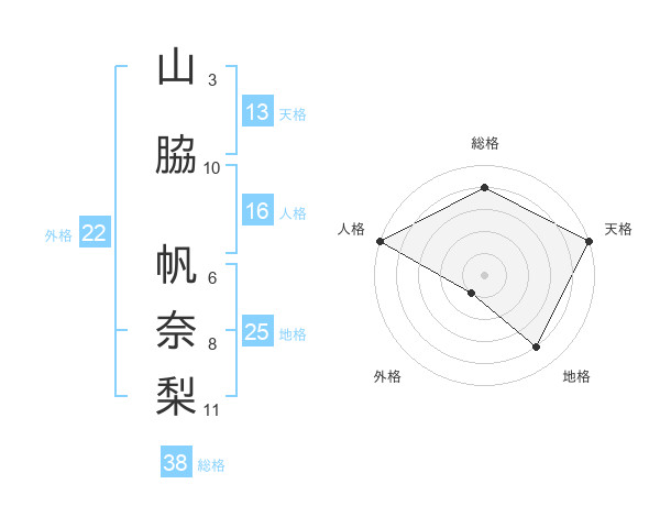 山脇 帆奈梨さんを姓名の画数から五運を鑑定