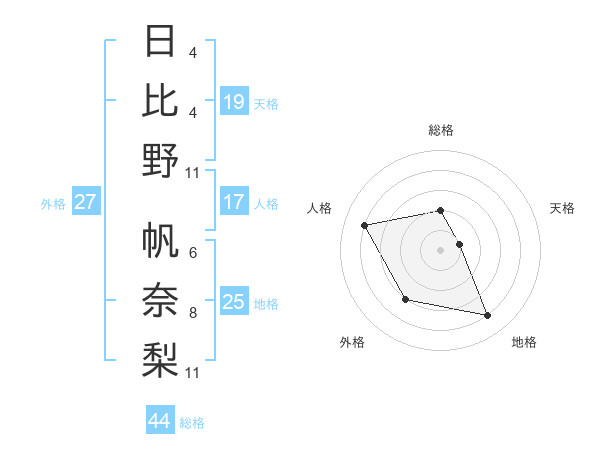 日比野 帆奈梨さんを姓名の画数から五運を鑑定
