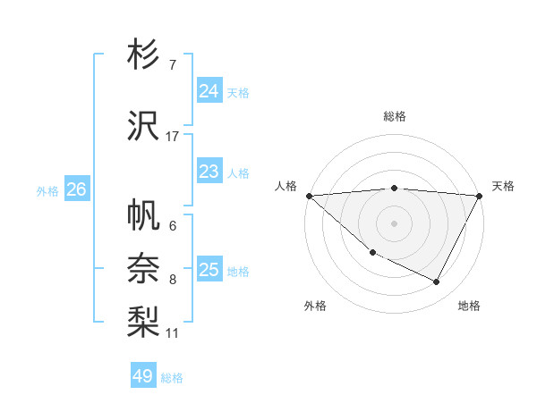 杉沢 帆奈梨さんを姓名の画数から五運を鑑定